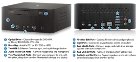 Now this looks like an interesting product coming out this summer. Sonnet will be releasing a Thunderbolt Docking station named the Echo 15 Thunderbolt Dock. It has up to 15 ports of expansion with the ability to add an internal 3.5" HDD along with an optical DVD or Blu-Ray drive.